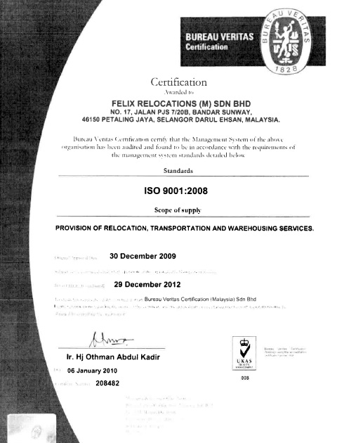 As an ISO 9001:2008 Certified Logistics company, we have established and implemented a comprehensive Quality Management Systems that addresses all areas of operation.