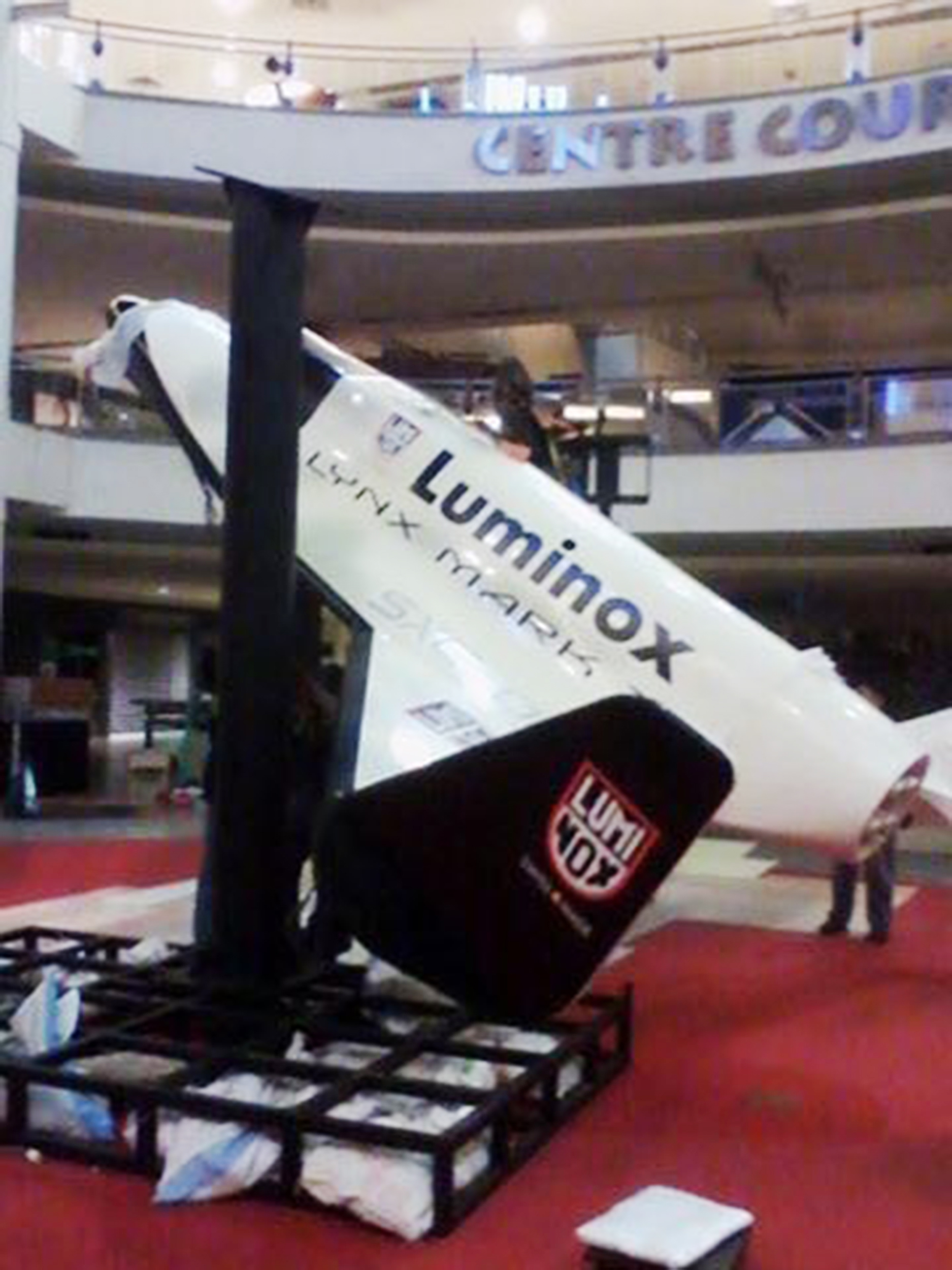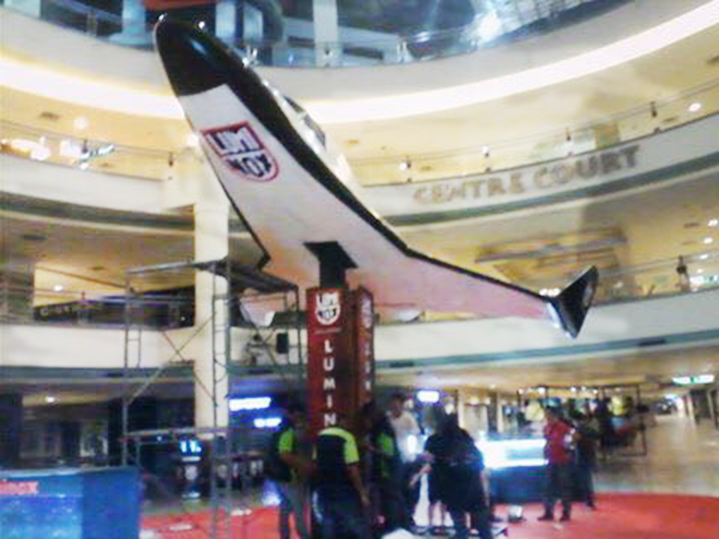 | Requirement: | To assemble the space shuttle, hoist it & to attach on a stand that is 14f high with a tilted plate with a 1f by 1f dimension After the event, to bring down the space shuttle & export to Brunei |